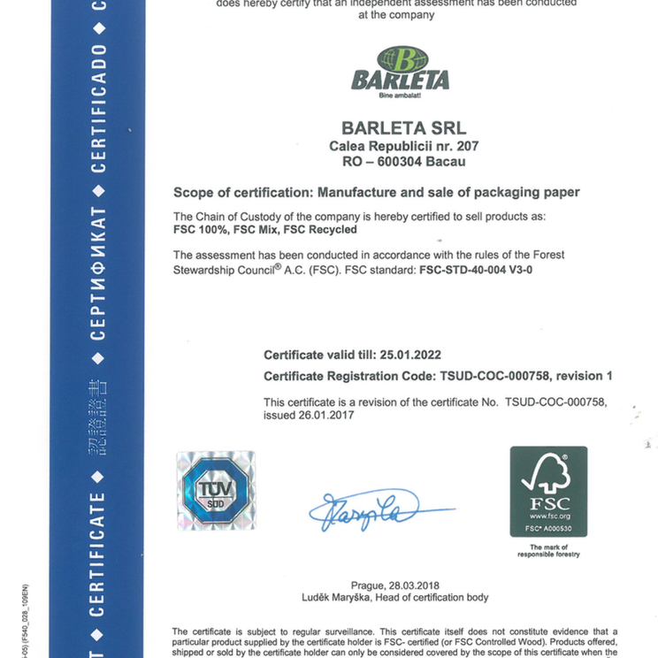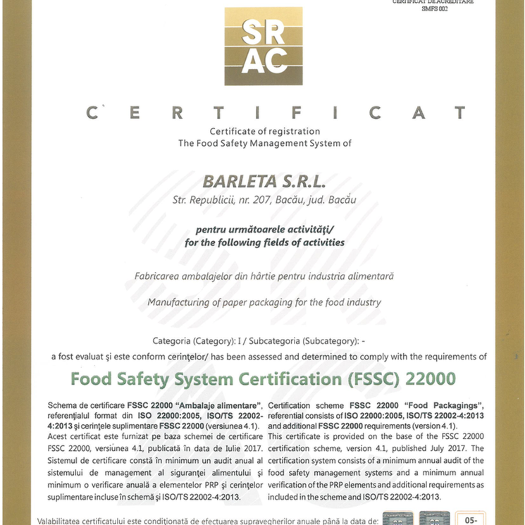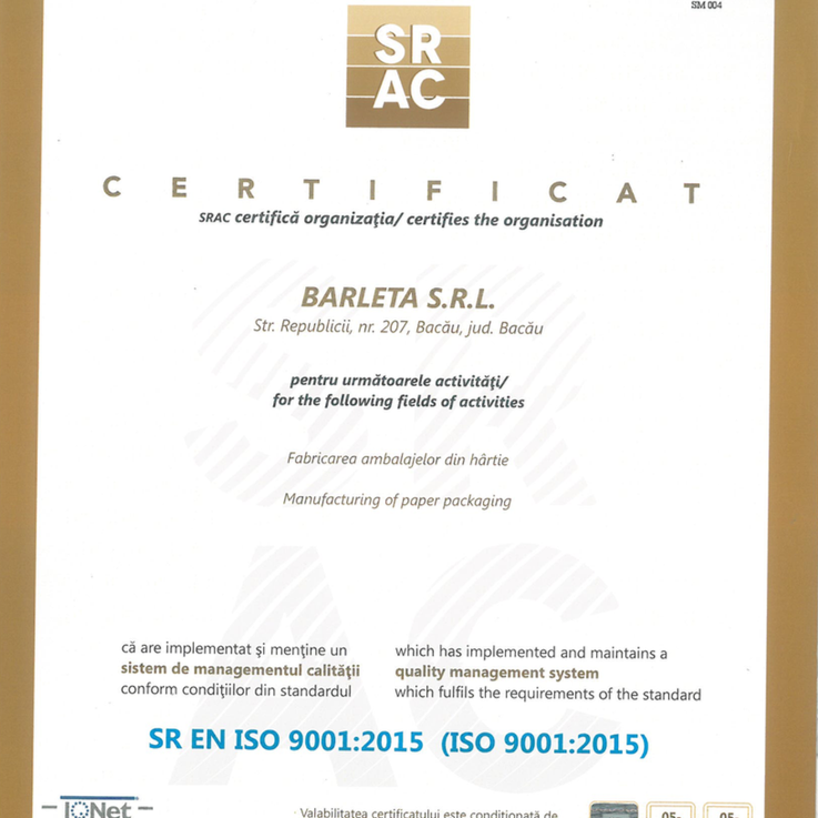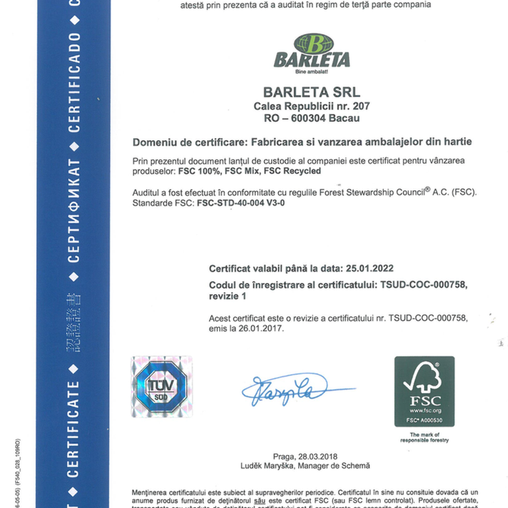 Datorită unui management de calitate și a reputației deosebite clădite pe nivelului ridicat de satisfacție al clienților noștri, BARLETA este partenerul ideal pentru gestionarea afacerilor dumneavoastră în ceea ce privește necesitatea producției și a furnizării în vederea utilizării de ambalaje special create și adaptate cerințelor dumneavoastră.
